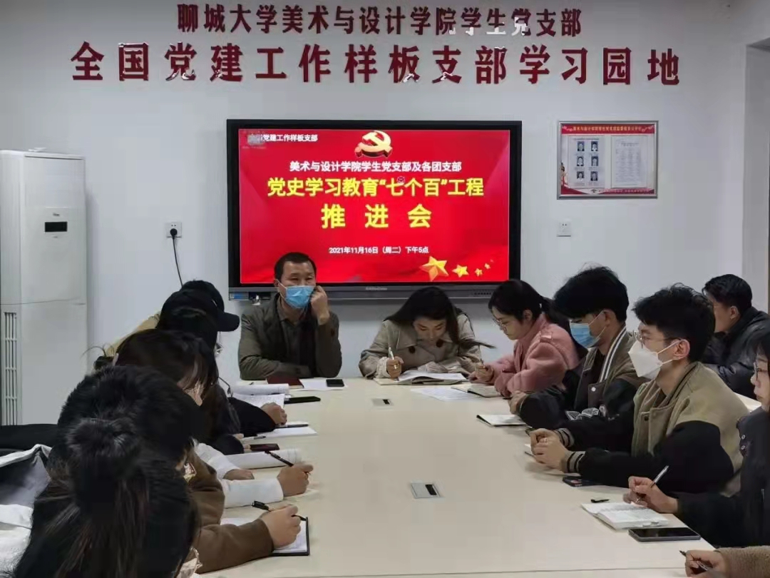 为切实推进党史学习教育“七个百”工程顺利实施,美术与设计学院学生第一、二、三党支部于11月16日在学苑五号楼二楼会议室召开党史学习教育“七个百”工程推进专题会。支部全体委员及各党小组组长参加会议。学院党总支副书记杨庆实主持会议。
