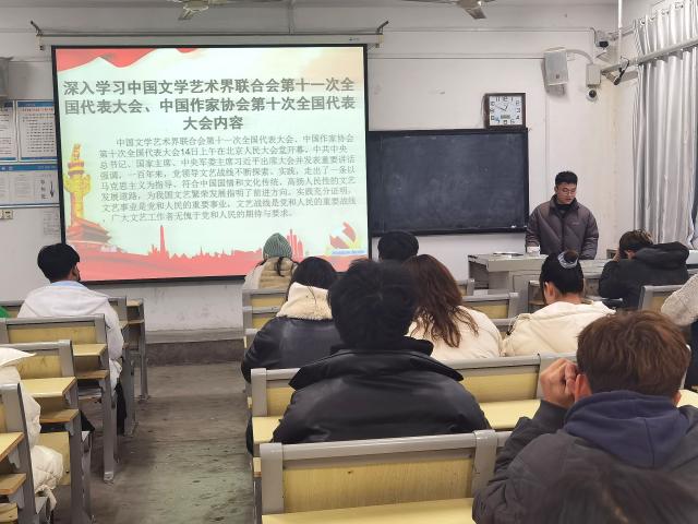 为了提高当代青少年文化自信心与民族自豪感,鼓励学生干部了解中国文艺新气象,发扬优秀中华文化,12月19日,美术与设计学院于7#101合堂组织学生会全体人员学习习近平总书记在中国文联第十一次全国代表大会、中国作协第十次全国代表大会的讲话精神。此次活动由学生会执行主席孙冲主持。