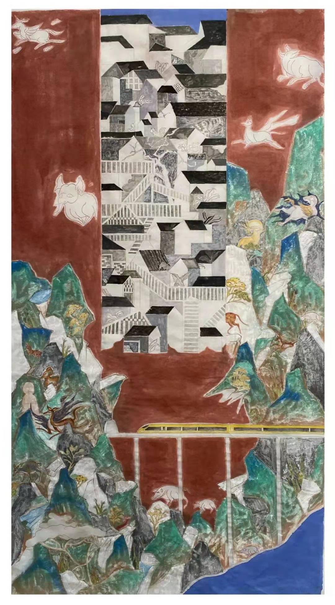 《欢歌》 谷慧婷  纸本设色  96cm×178cm