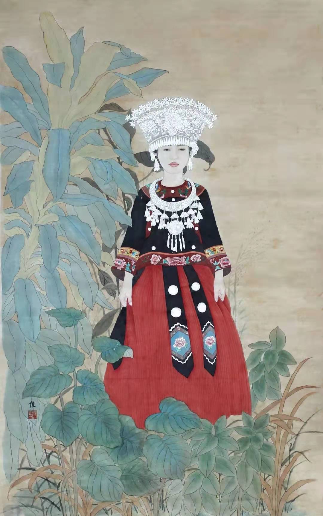 《祈盼》 郑佳佳  纸本设色  137cm×80cm