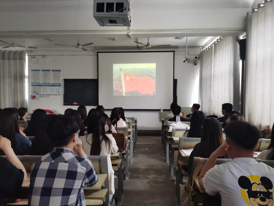 王老师先是让学生观看了电影《我和我的祖国》里有关开国大典的视频片段和中央美术学院唐勇力先生创作巨幅国画《新中国的诞生》的视频资料,然后分别让几个同学谈一谈看了《我和我的祖国》的感受,同学们分别就影片中各个行业的人从自己的角度为开国大典做着自己的奉献,奋不顾身、甘于奉献、团结协作的精神所深深的感动,尤其是听到毛主席在天安门城楼上宣告中华人民共和国和中央人民政府成立的时刻,看到五星红旗冉冉升起,眼中饱含着泪水,心中激荡着浓浓的爱国热情。又通过交流《新中国的诞生》视频内容,解释了本次报告的题目,并告诫同学们无论是论文还是报告确定题目务必严谨。