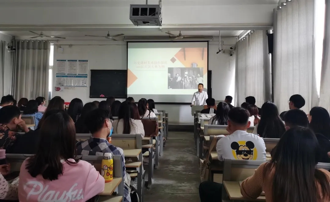2021年5月13日上午10时,在聊城大学美术与设计学院7-301多媒体教室,王东兵副教授做了题为“历史题材美术创作探究——以开国大典为例”的学术报告,2020、2019级部分硕士研究生和部分本科学生党员90余人聆听了此次报告。