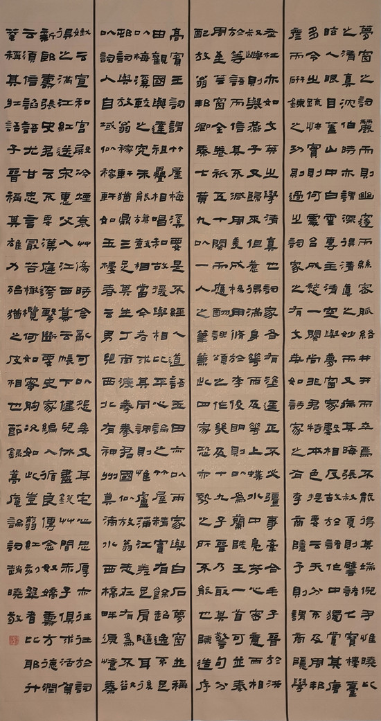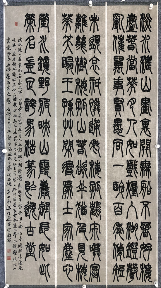美术与设计学院研究生赵晓敬、马浩书法作品入展2021“中国书法•年展” 作者:赵丽丽 来源:美术与设计学院 发布时间:2021-10-24 阅读次数: 2021年10月21日,由中国书法家协会主办的“2021‘中国书法•年展’全国书法篆书、隶书、篆刻作品展”评审工作在安徽省淮北市圆满结束。 我院研究生赵晓敬、马浩两位同学的书法作品入展此次年展。此次入展是美术与设计学院深化书法美育教育,弘扬中华优秀传统文化的集中展现,也是我校高等书法教育的一次新突破。 两位同学入展作品: 《蒿庵论词》选抄 《孤山诗选录》