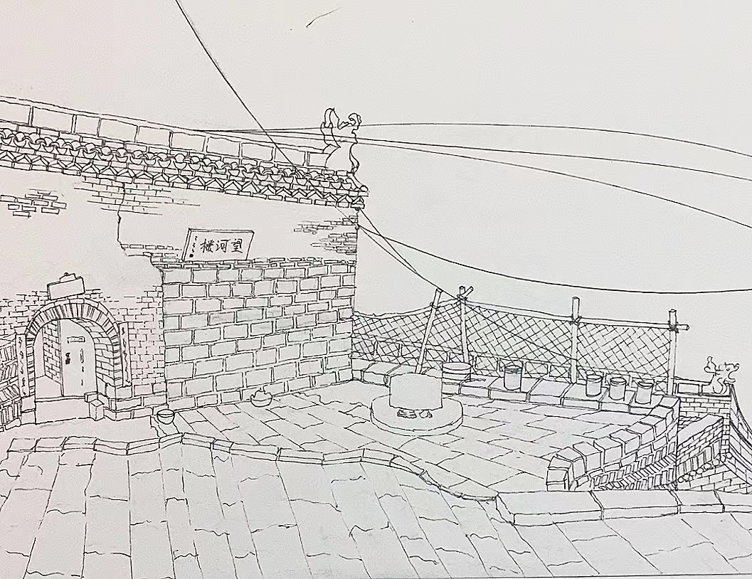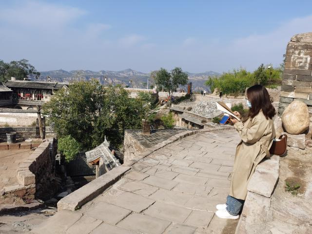 在绿水青山间,在小河流水旁,在农家院落前,在经典壁画下,师生用画笔表现着祖国大地的一枝一叶,一砖一瓦……面向自然,汲取灵感,观察、感受和记录整个行程中的所见所闻、所思所想,真真切切的做到了“本不离手”。尤其在碛口古镇里邀请头戴白毛巾、身穿羊皮袄、手持铜烟杆的老大爷做模特写生,从不同角度观察模特形体变化,与模特进行直接交流,为各位同学对人物刻画提供了直接的素材。在永乐宫通过现场临摹壁画,分析原作用笔、用色、造型等特点,从学习角度对艺术经典进行形式上的把握,从而加强技法的提升。
