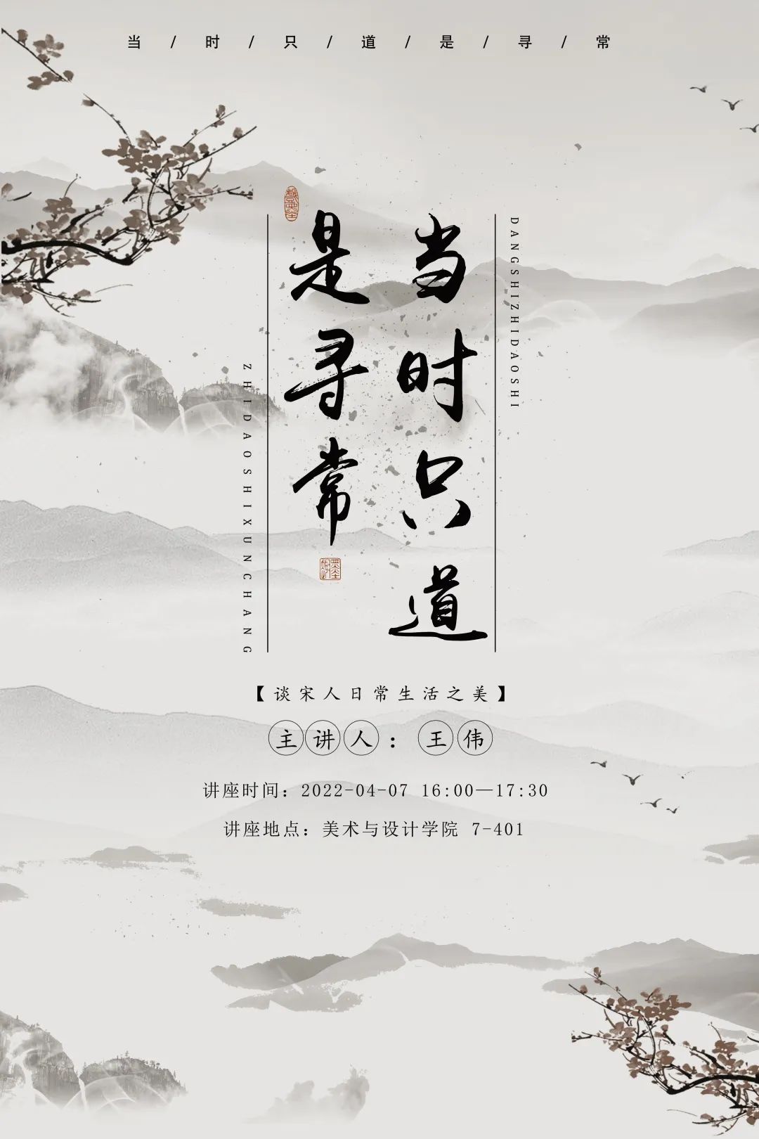 2022年4月7日下午在7号教学楼401教室,我院王伟老师为2021级全体研究生作题为《当时只道是寻常——谈宋人日常生活之美》的讲座。