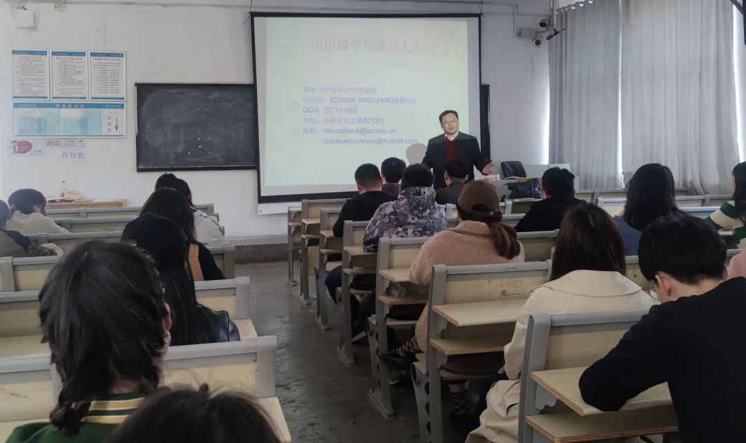 2022年4月13日下午在7号教学楼301教室,我院邀请聊城大学国际合作交流处钱润池副处长作题为《出国留学与成功人生》的讲座。