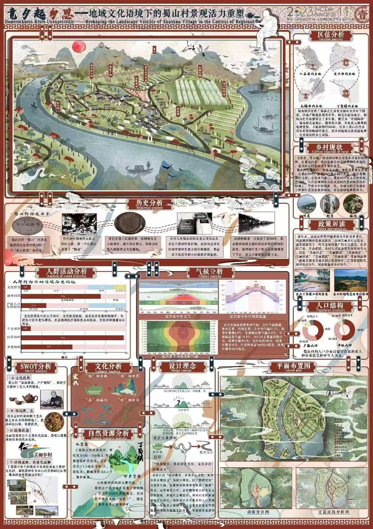 2023年11月作品《只有乡如故——地域文化视角下的蜀山村景观活力营造》荣获第九届“中装杯”全国大学生环境设计大赛一等奖;