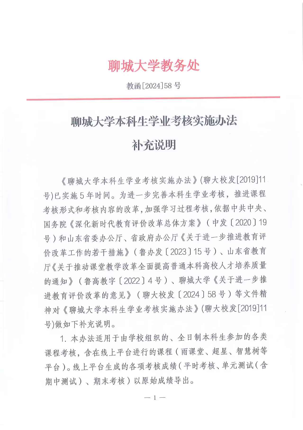 » 教函【2024】58号 聊城大学本科生学业考核实施办法补充说明
