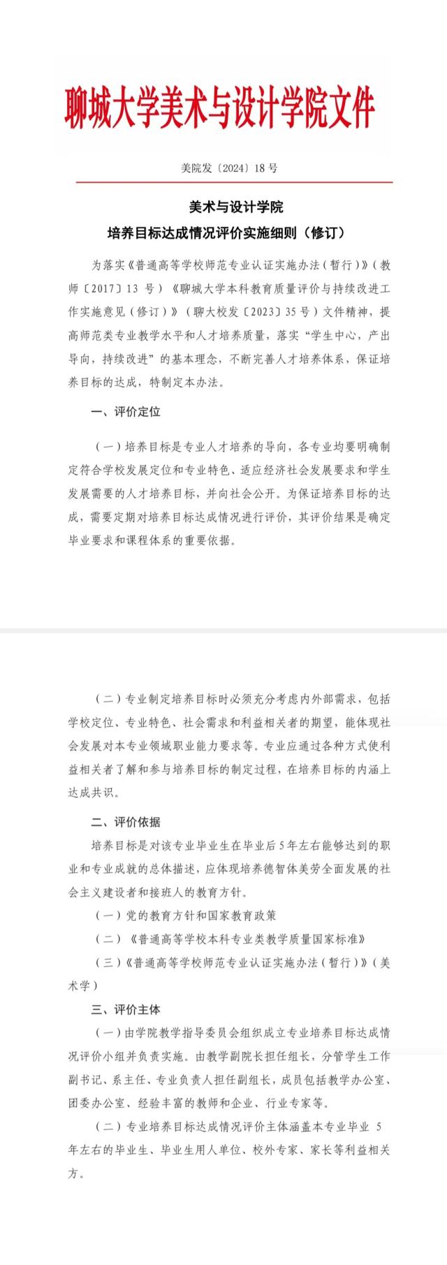 » 美术与设计学院培养目标达成度评价实施细则