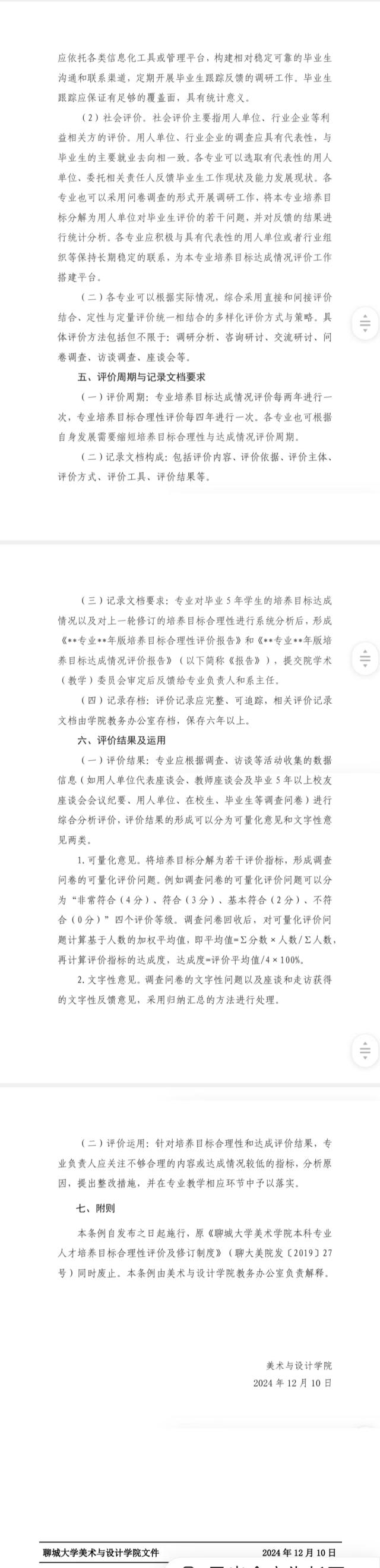 美术与设计学院培养目标达成度评价实施细则