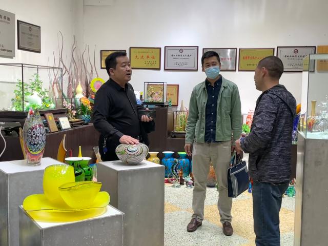 5月8日,黄河学研究院、美术与设计学院考察团前往淄博考察琉璃、陶瓷烧制技艺、鲁派内画创作技艺。