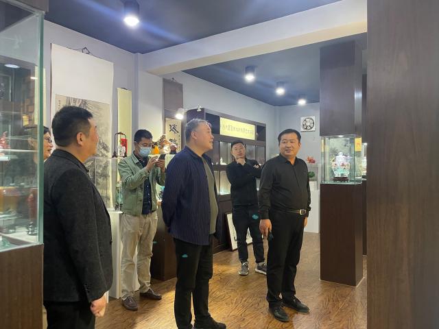 考察团还到内画张艺术馆考察调研,国家非物质文化遗产鲁派内画传承人张鹏、文静夫妇接待了考察团,陪同考察团参观了他们的工作室及作品陈列馆,并介绍了鲁派内画的创作技艺及馆藏珍品。