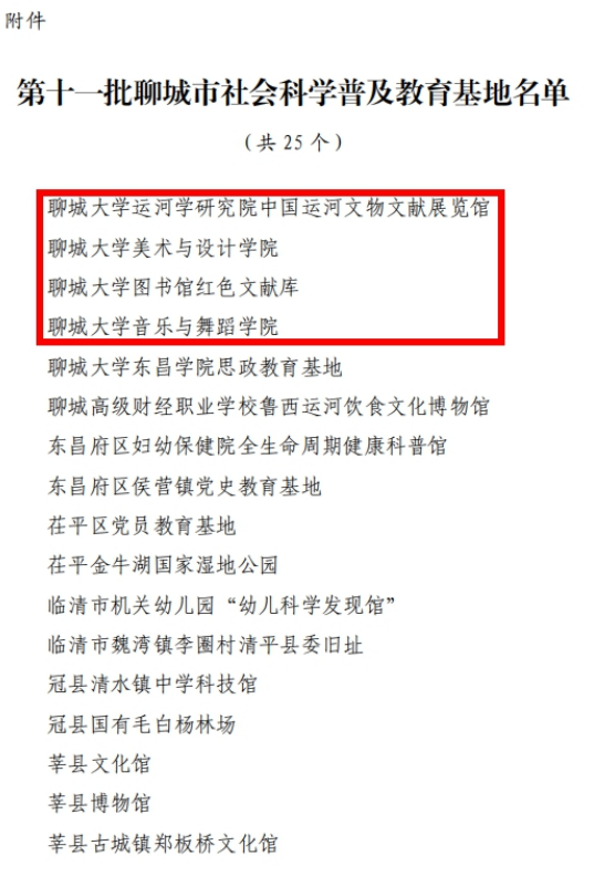 日前,中共聊城市委宣传部、聊城市社会科学界联合会联合公布第十一批25个聊城市社会科学普及教育基地名单,我院成功获批。