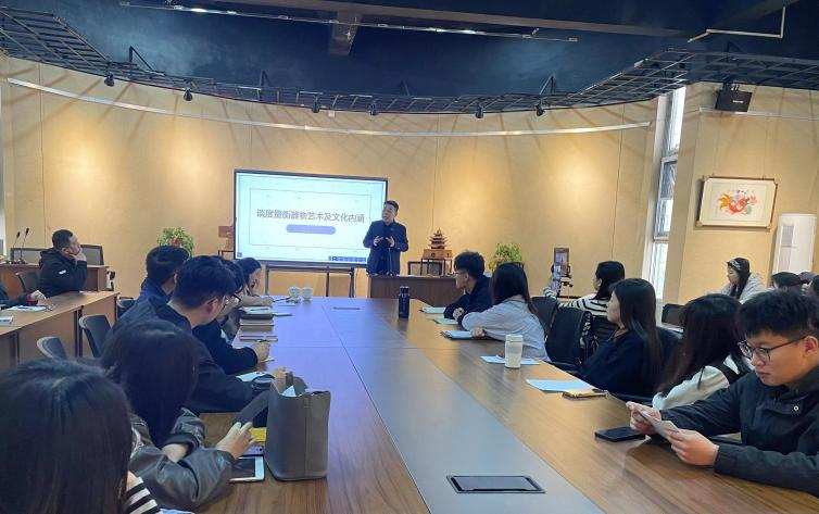 韩光友馆长首先从度、量、衡三个名词出发,讲述了度量衡三词所蕴涵的深层民族传统文化。然后,韩老师结合自己的实际研究,将实物与理论相结合,现场为大家展示并讲解度量衡的若干器物及其背后隐喻的文化。最后,韩老师结合传统社会的师徒传承制度,谈及当下的文化传承,鼓励同学们要刻苦学习,围绕自己的研究兴趣点进行深耕。