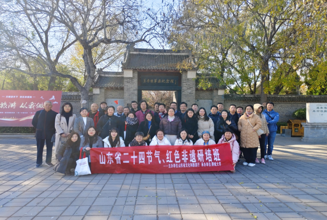 11月28日上午,山东省二十四节气、红色非遗培训班外出赴河南省濮阳市华龙区东北庄杂技文化园区的濮阳华夏神木博物馆和单拐冀鲁豫边区革命根据地进行考察,山东省二十四节气、红色非遗培训班40余人参加了本次考察。