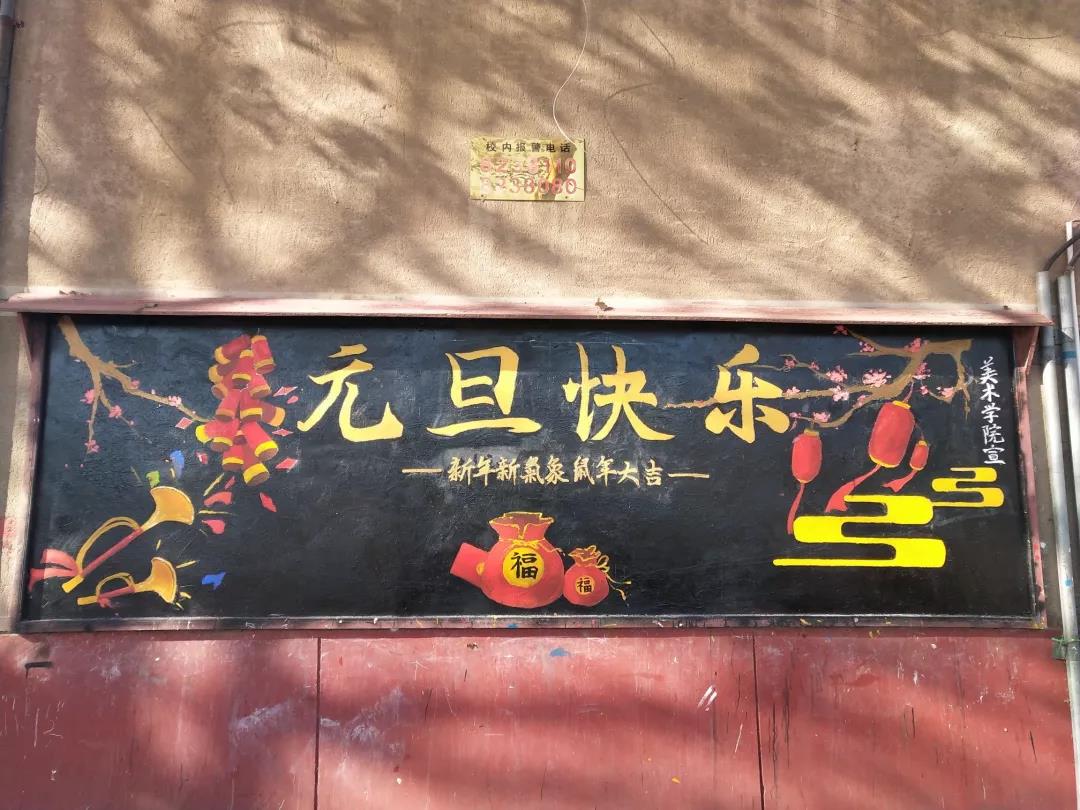 为庆祝我国传统节日--元旦,增添大学生校园生活的色彩及锻炼大学生的动手绘画能力。12月29日,聊城大学美术学院于聊城大学美术学院七号楼处以黑板报的形式举办了“鞭炮声声又一年”为主题的板报活动。