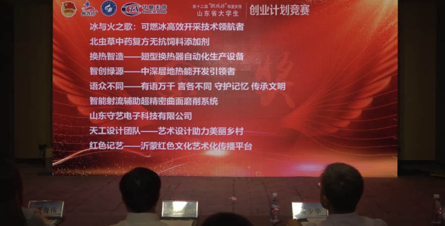 9月7日,由共青团山东省委、山东省教育厅、山东省科学技术协会、 山东省学生联合会主办,山东科技大学、青岛酒店管理职业技术学院承办的第十二届“挑战杯”•华夏天信山东省大学生创业计划竞赛终审决赛在线上进行。