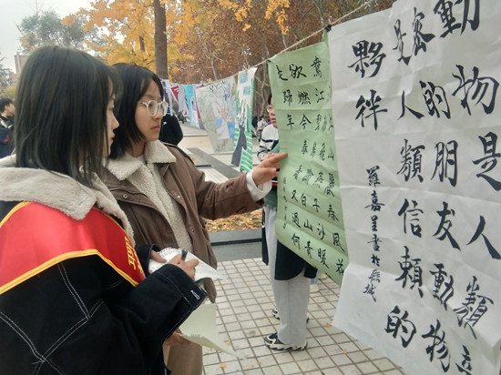 此次活动通过绘画与书法形式表现出来,生动形象的体现出爱护动物,保护动物的活动主题。组织者在线上大力宣传,引导同学们积极参加活动。并且让同学们在线上收集和活动有关的资料。同学们充分发挥想象,进行自由创作。作品主题突出,绘画图案简洁,含义明确,色彩明快。活动期间,志愿者把征集的绘画与书法作品用细麻绳串成一条线,每一幅作品都竭尽所能用自己的画与文字表达出自己的爱护动物之心,同学们纷纷参观作品展,通过作品也认识到保护动物的重要性。参观者三两组队,站在作品前对作品进行讨论、观赏,活动现场氛围融洽,其乐融融,每一幅作品可以看出对保护动物的热烈之心,同学们也纷纷表示要从自身做起善待动物、和谐相处。
