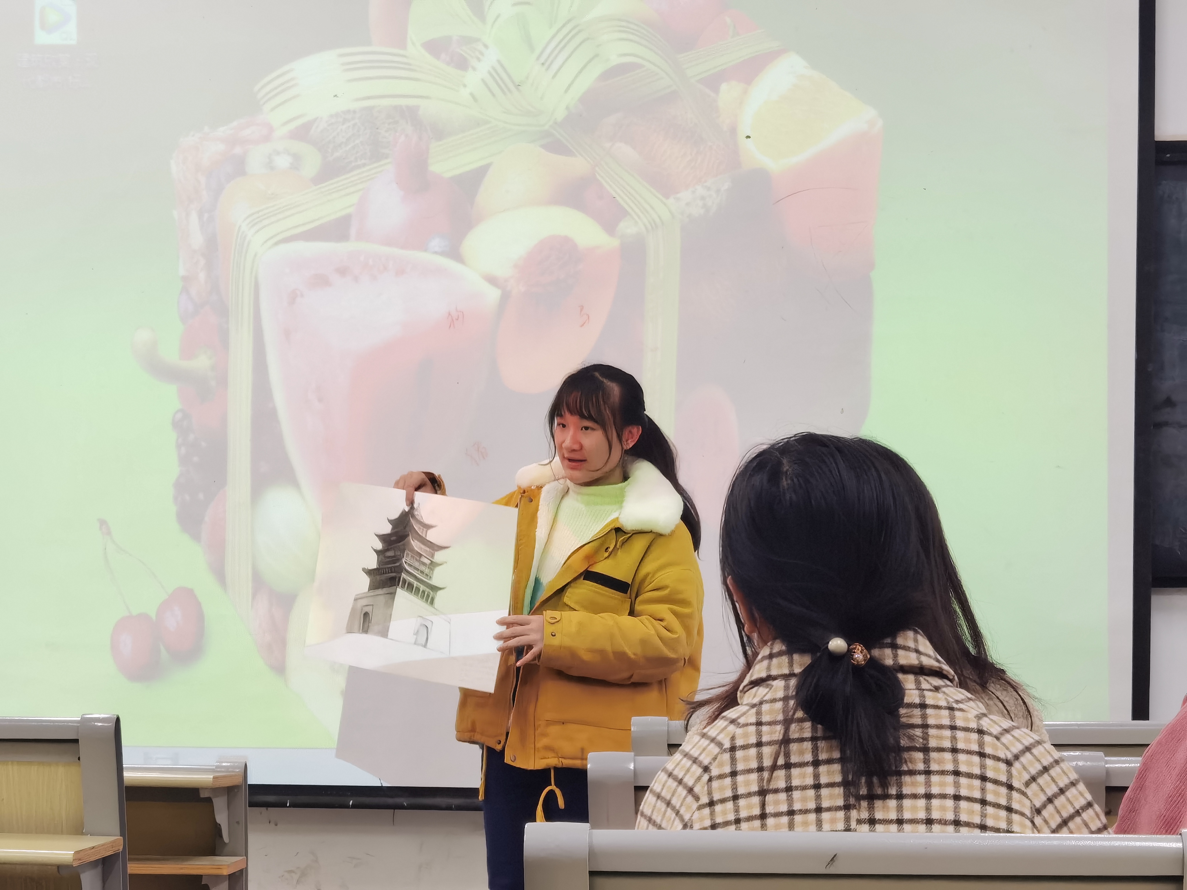 此次活动通过绘画和版刻方式画出同学们心中的聊城,表现其中所蕴含的精神。活动开始,组织者做了一个简单的活动介绍,随后负责人安排同学们挨个上台演讲自己的创作理念。很多同学对光岳楼进行了描绘,光岳楼是聊城的标志性建筑,代表着聊城古往今来的历史文化。很多同学纷纷表示对光岳楼影响极为深刻。还有同学用版刻方式对聊城大学的风景进行创作,画面中的聊城大学内湖边有一只猫,整幅画面充满神秘和浪漫,仿佛在诉说着我们芊芊学子来聊城大学独自的求学的场景。同学们的绘画手法多样,创造理念奇思妙想。同学们积极的上台介绍自己的作品,掌声在每一位同学上下台之间不断响起,热闹非凡。座位上不断传来赞叹声。活动接近尾声,同学们在拍摄大合照后有序离场。