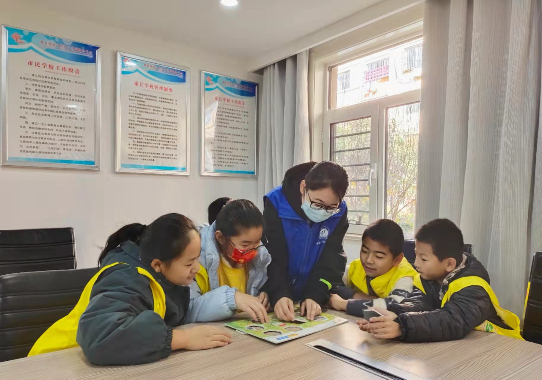 遵守交通法,安全你我他。为了正确引导孩子们遵守交通规则,认识各个交通标识,2021年11月14日,聊城大学美术与设计学院“与美同行”志愿服务协会于聊城市东昌府区新区街道华府社区举办了“七彩四点半--交通安全奇遇记”的活动。