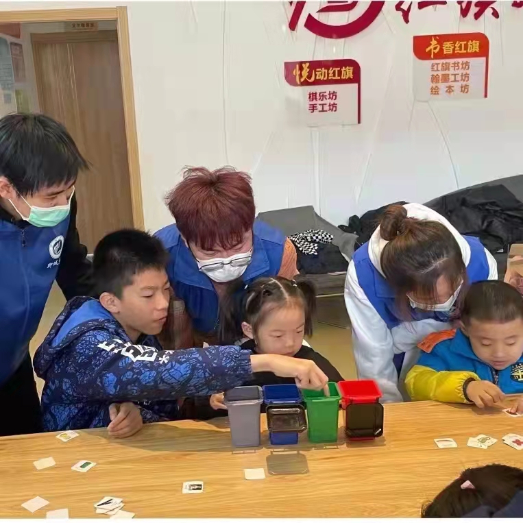 活动负责人提前到达活动地点做好准备工作,小朋友们也陆续到达上课地点并在志愿者的引导下完成签到。志愿者们针对幼儿年龄特点以及现有的知识经验,通过观看视频、图片、PPT、操作游戏的形式让孩子们了解垃圾分类的意义和垃圾分类小常识。活动过程中孩子们情绪高涨积极参与,纷纷到讲台前发表自己对垃圾分类的看法和学到的小知识。在学习完相关知识过后,我们当然就要来试着操作一下啦!志愿者将小朋友们两到三人分为一个小组并发下垃圾分类模型。我们的任务是将卡片上所对应的物品进行分类,并投入相应的小垃圾筒中,小朋友们都非常聪明,对垃圾的认识很充分,自己独立的将垃圾分放在相应的垃圾桶内。活动结束后,志愿者跟小朋友们一起收拾整理相关用品并合影留念。
