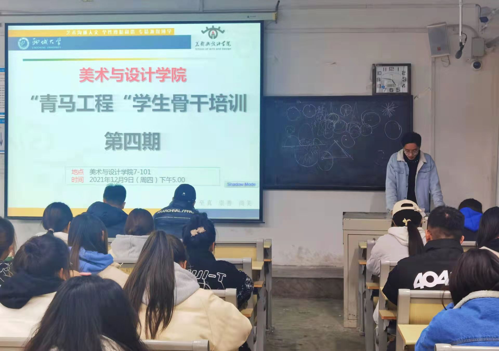 为促进学院学生干部队伍建设,贯彻落实跟党走中国特色社会主义道路的理想信念,进一步提高青年的政治修养、综合素质和业务能力。12月9日,美术与设计学院于7#101开展“青马工程”学生骨干培训活动(第四期),2021级全体学生干部参加本次培训。