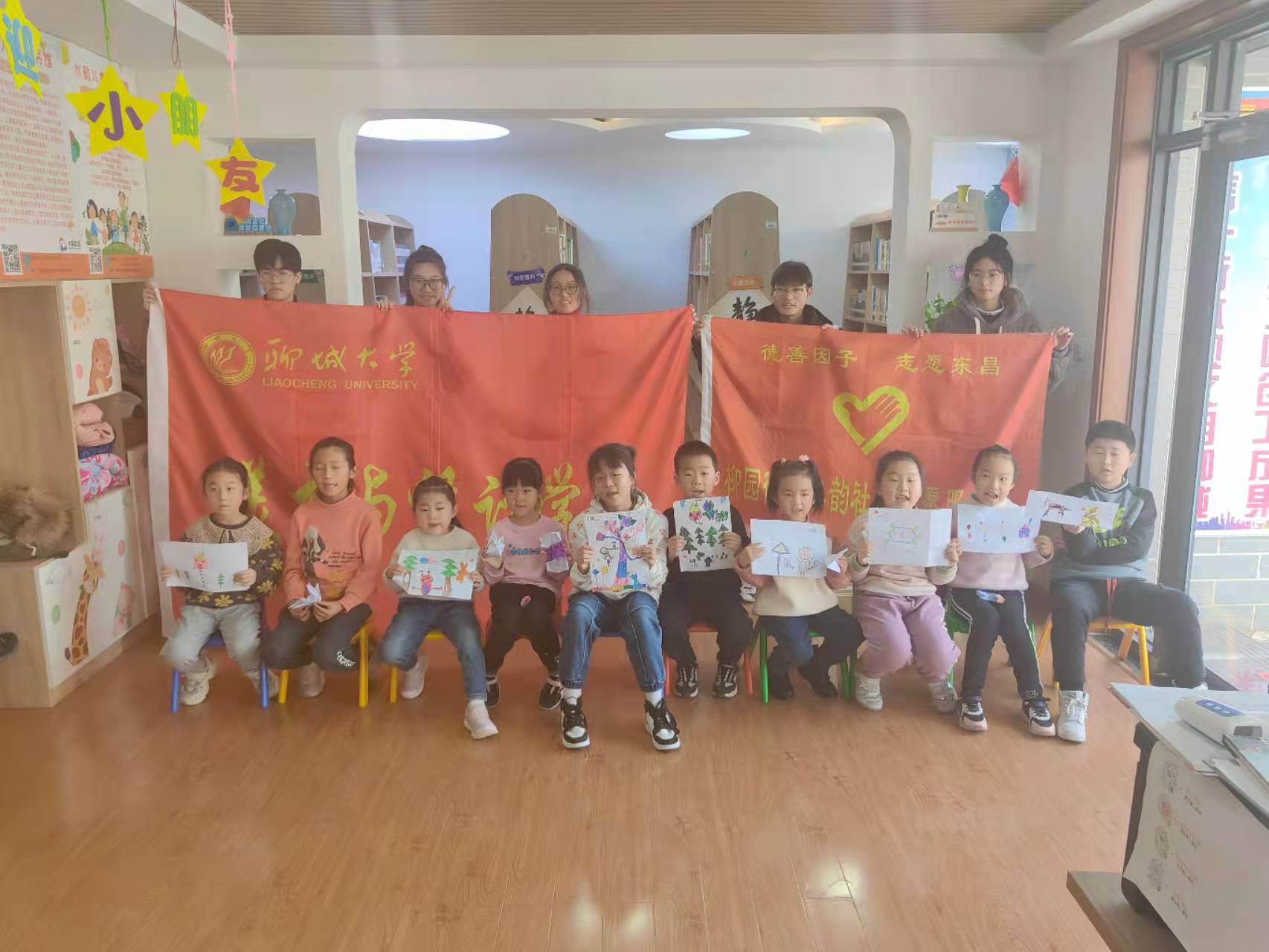 为了培养小朋友们对画画的兴趣,使小朋友们发现大自然和生活中的美好事物。12月20日,聊城大学美术与设计学院于水韵社区开展“智慧课堂,相伴童行”志愿公益活动。
