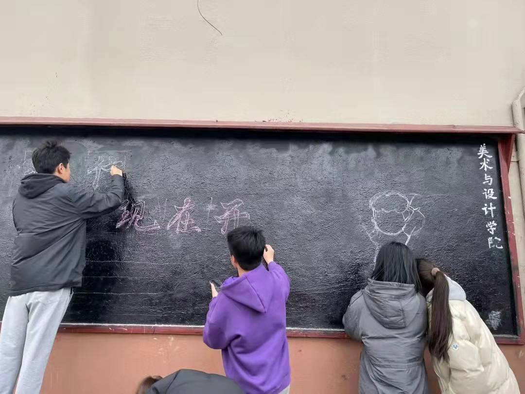 拒绝作弊,诚实应考。期末考试即将来临,为更好地贯彻落实学校严肃考风考纪相关文件精神,打造公平公正的考试环境,加强学院学风建设,进一步展现优秀学子学习风貌和道德水平。2021年12月23日,美术与设计学院于7#拐⻆板报区举办“诚信考试,现在开始”主题黑板报活动。