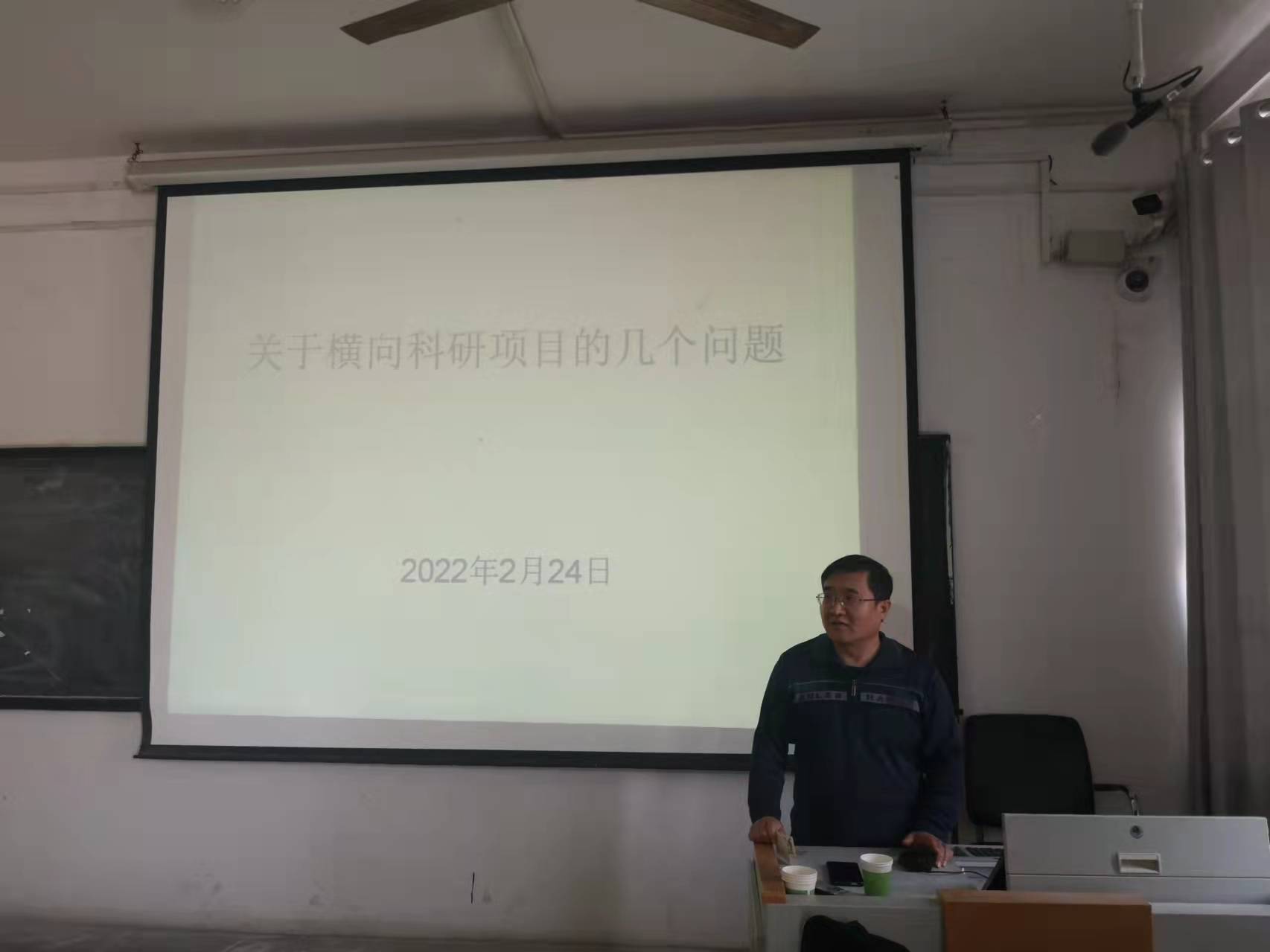 2022年2月24日,学院邀请人文社科处周浩集为我院全体教师做了关于横向科研项目的专题辅导报告。报告会由学院党委副书记、院长张兆林主持。