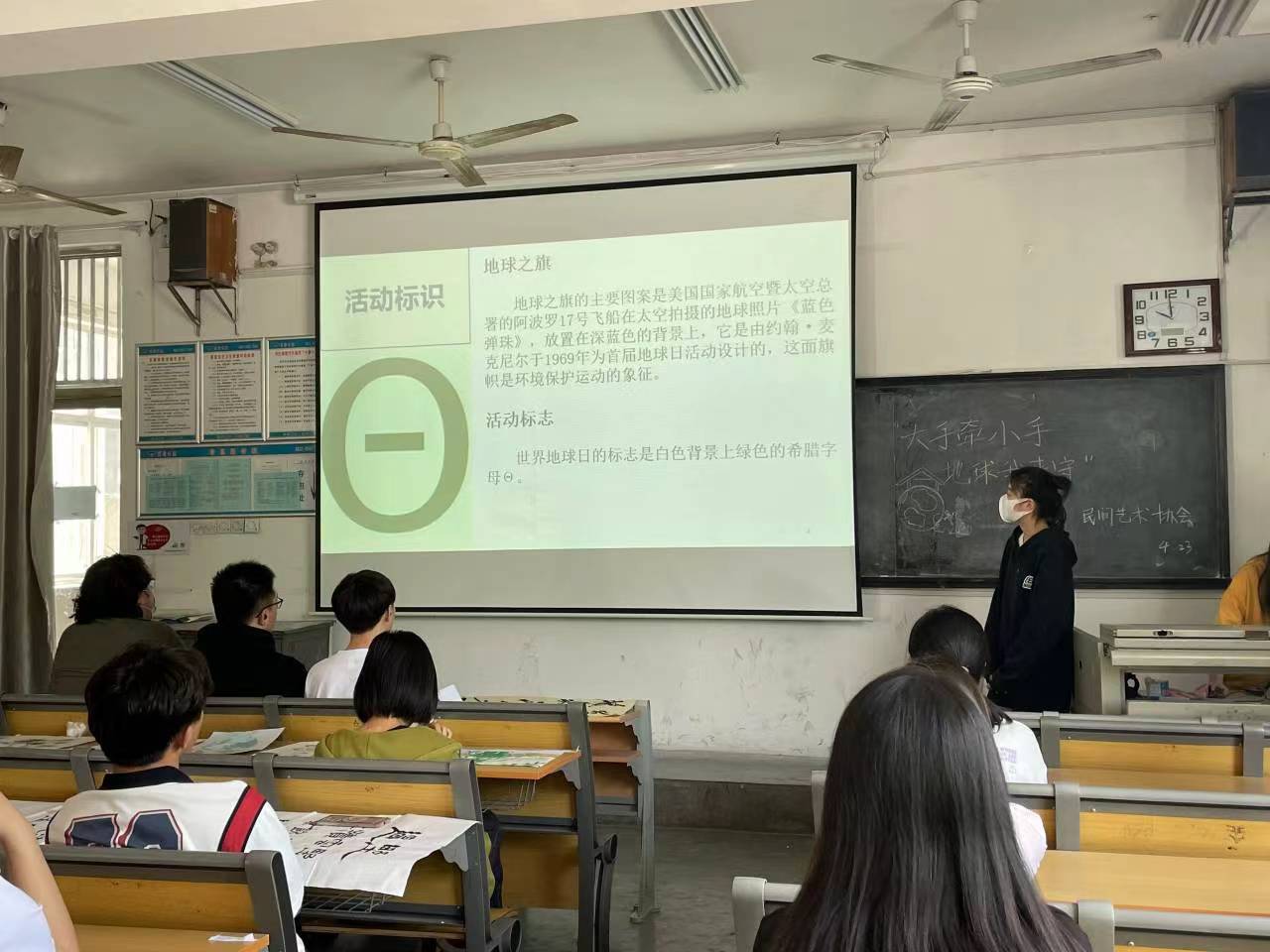 世界地球日为每年的4月22日,是一个专为世界环境保护而设立的节日。同学们积极参与征稿,充分发挥想象,借助作品表达自己心中环境保护意识和问题反思意识。展厅中,几位优秀作者依次上台,向大家介绍自己的作品,诸多的作品各有风采,也体现了创作者们不同的思考。而后,活动主持人借助精心制作的PPT,向大家介绍世界地球日的产生背景、发展经历和重要意义,分享许多十分具有影响力的环境保护运动。并借此讲述当前世界面临的重大环境问题,也分析了环境保护的重要意义。