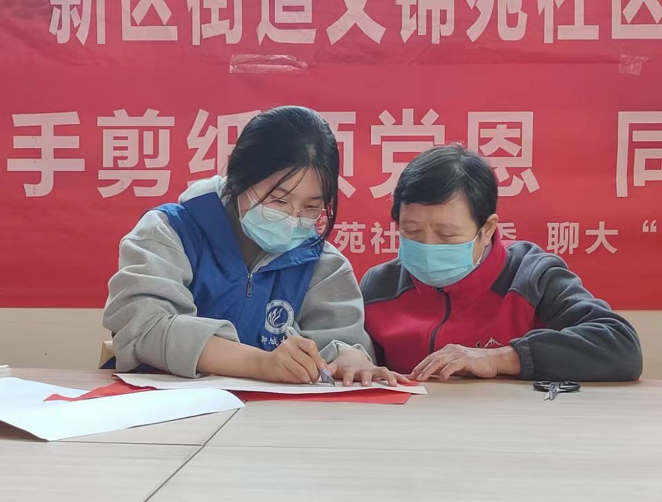 为学习贯彻习近平新时代中国特色社会主义思想,弘扬中国传统文化,倡导时代新风,10月16日,聊城大学美术与设计学院“与美同行”志愿服务协会于聊城市东昌府区新区街道文锦苑社区举办“巧手剪纸颂党恩,同心共圆中国梦”志愿服务活动。