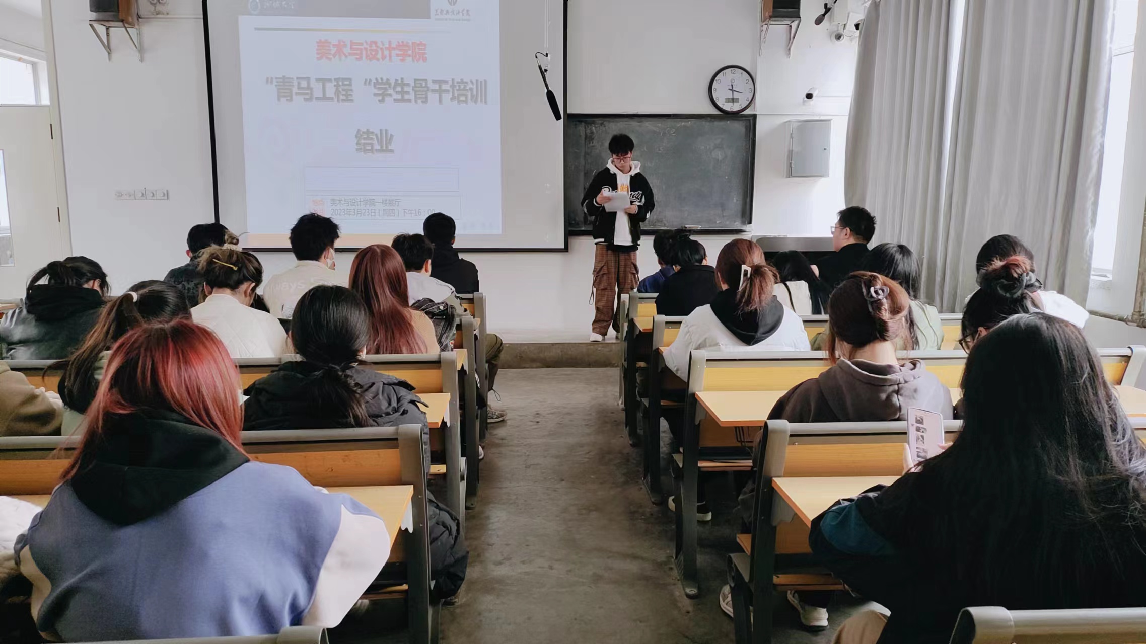 为激励学生干部发挥先锋作用,培养爱党爱国意识,树立正确的社会主义核心价值观,3月23日,美术与设计学院于西校区7#201组织开展第三十二期青马工程结业会,本次会议由赵志远主持,2022级各班学生干部参与本次培训。