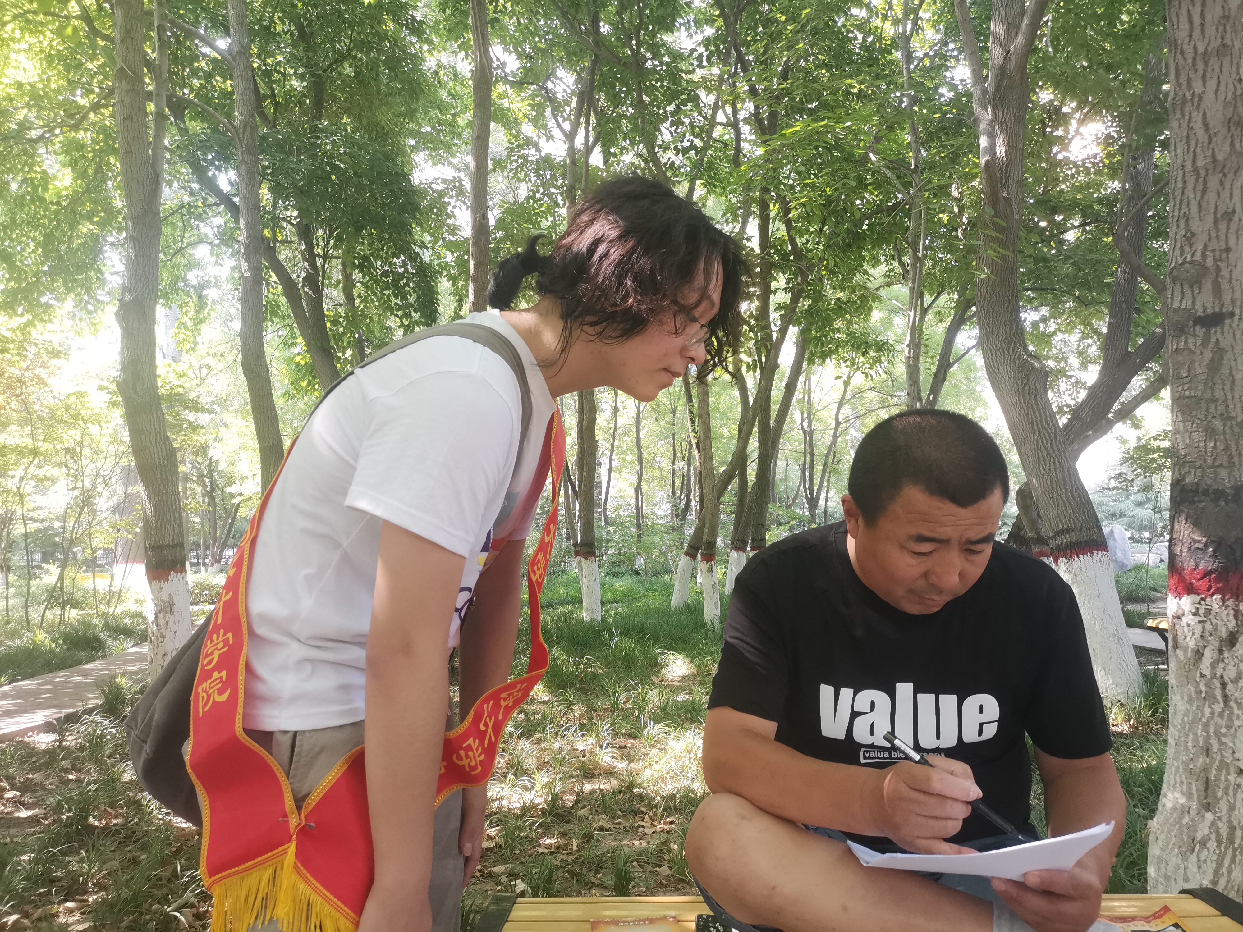 为增强群众对民生福祉的关注,提高人民对社会问题的关注,8月25日,美术与设计学院“行健”志愿服务队在聊城市东昌府区人民公园中展开民生福祉调查。