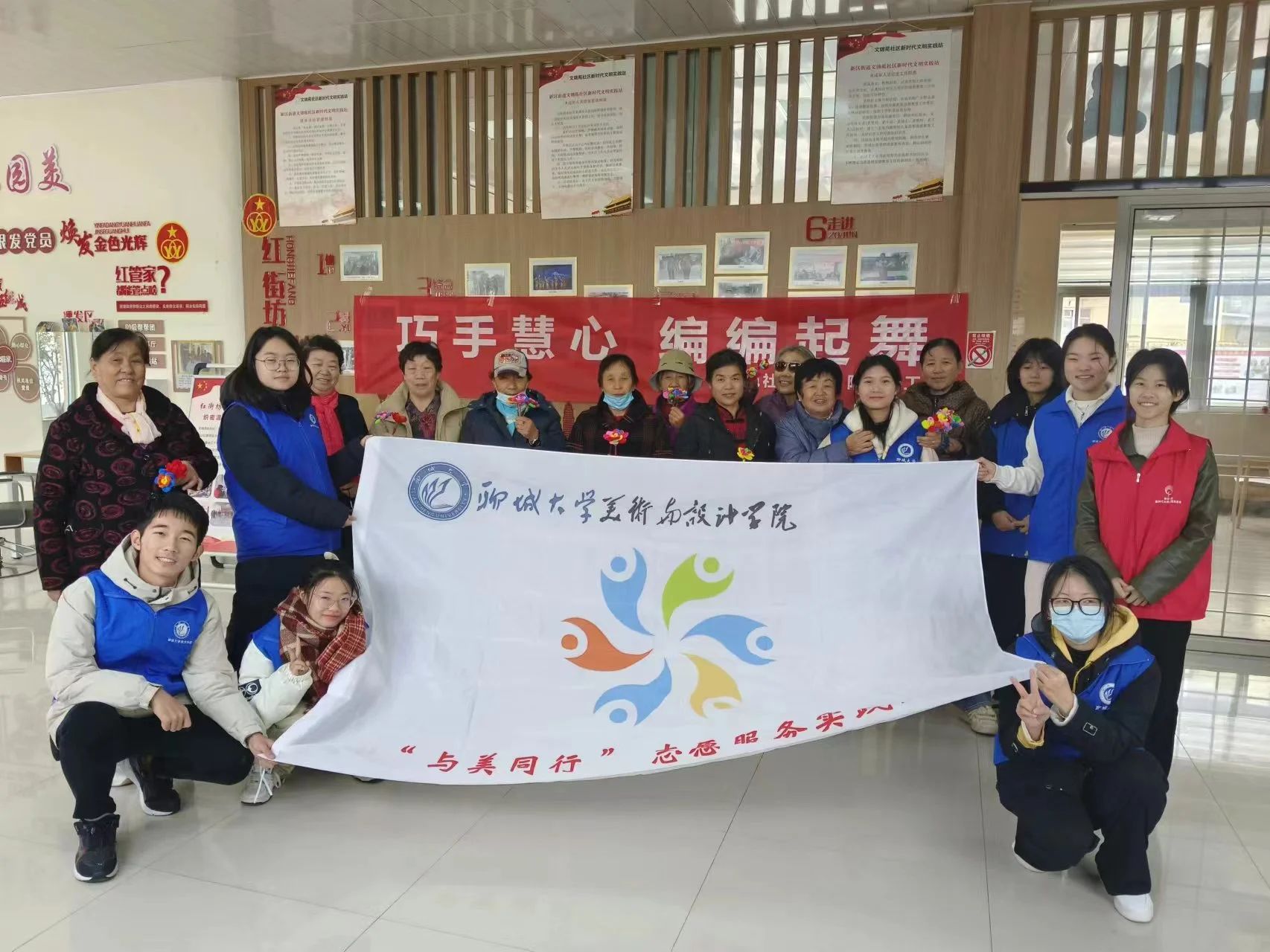 为传承中华民族爱老敬老的传统美德,丰富社区老年人的文娱生活,11月15日,美术与设计学院“与美同行”志愿服务协会于文锦苑社区举办“巧手慧心 编编起舞”主题社会实践活动。