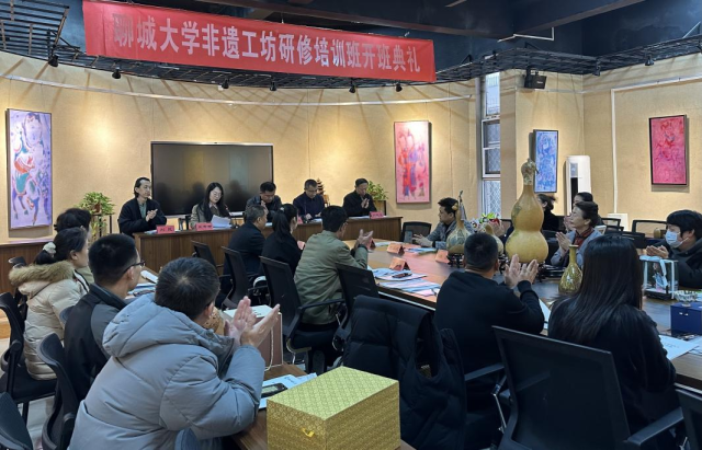 11月27日,聊城大学非遗工坊研修班开班典礼在聊城大学美术与设计学院一楼多功能厅隆重举行。