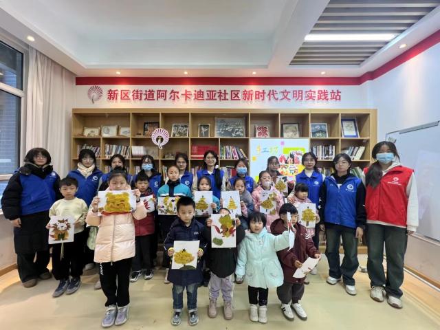 为落实立德树人的根本任务,丰富小朋友们的假期生活和锻炼小朋友们的动手能力,12月2日,美术与设计学院“与美同行”志愿服务协会于阿尔卡迪亚社区举办“落叶成画绘美景 同心喜迎新时代”主题手工活动。