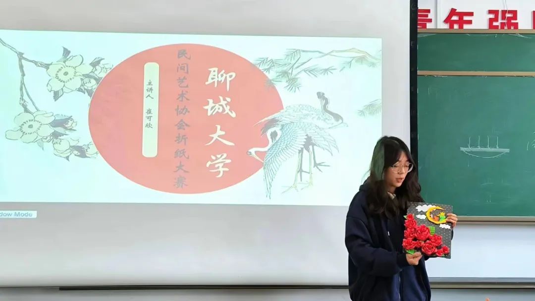 伴随着负责人介绍的注意事项和规则,活动正式开始,主讲人通过PPT的形式为同学们讲述着折纸的由来,以及它背后所赋有的深厚传统文化意义。为同学们展示部分折纸的教程提供参考。同学们迫不及待的想要动手开始制作了,活动过程中同学们运用简单的彩纸胶棒等工具结合自己的创新思维展现出他们高超的动手能力。活动秩序井井有条。接下来主讲人组织同学们上台进行展示交流作品心得。活动最后,由负责人带领大家合影留念。至此,活动圆满结束。
