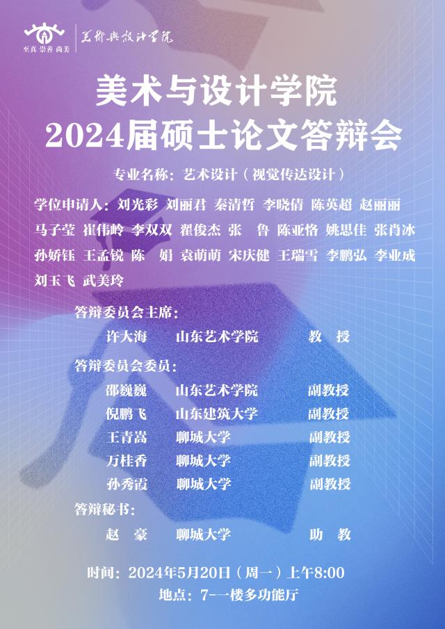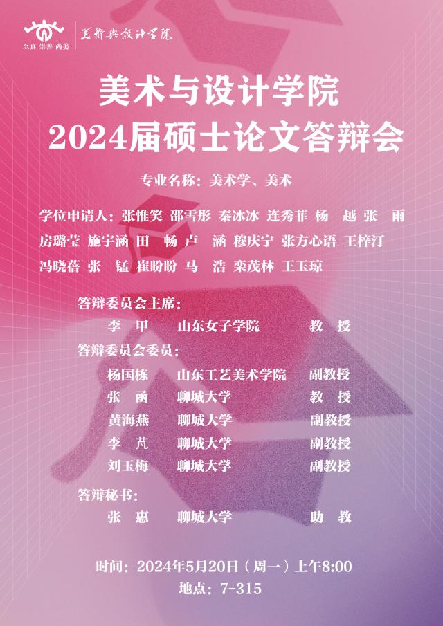 美术与设计学院2024届硕士研究生学位论文答辩工作安排