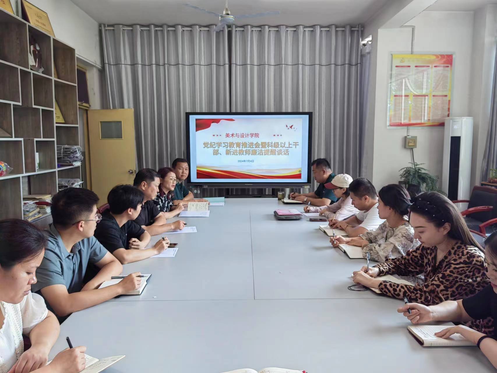 7月4日上午,美术与设计学院于7-315会议室开展党纪学习教育推进会暨科级以上干部、新进教师廉洁提醒谈话。学院党委书记杨庆实,党委副书记、院长张兆林,以及学院科级管理人员、新进教师、新发展教师党员参加会议。会议由学院党委组织员张雅琪主持。