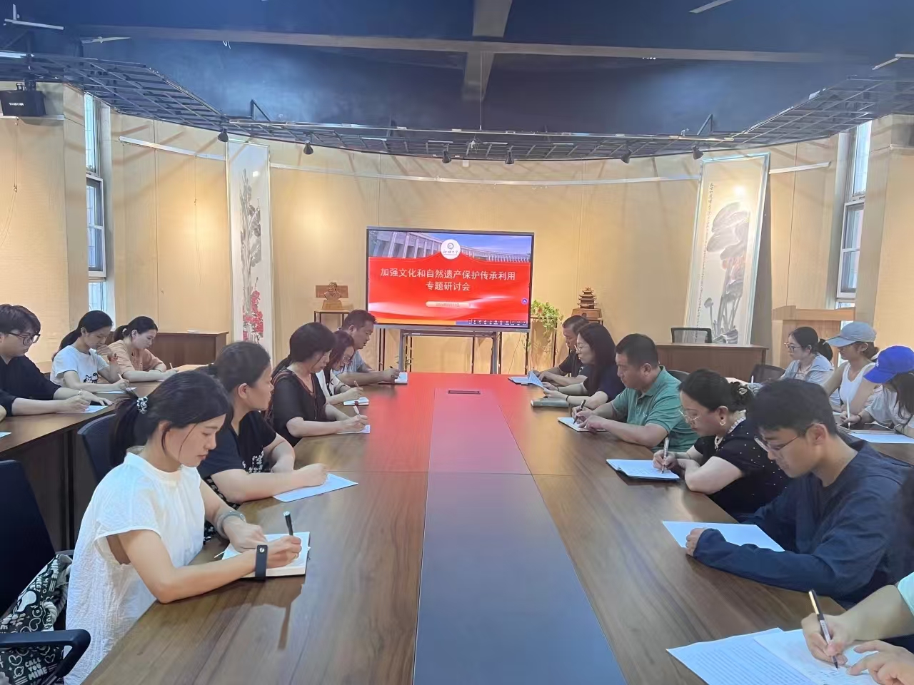 8月11日,我院召开专题研讨会,围绕习近平总书记对加强文化和自然遗产保护传承利用工作的重要指示进行研讨,30余名师生参加研讨交流。大家一致认为,要深入学习贯彻习近平新时代中国特色社会主义思想和党的二十大、二十届三中全会精神,认真贯彻落实习近平文化思想,立足于本职岗位,积极推进历史文化遗产整体性保护、系统性传承、创新性发展,为中华民族文化事业与文化产业发展作出应有贡献。