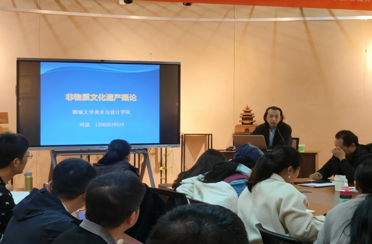 11月25日下午,我院邀请刘昆副教授在学院一楼多功能厅作《非物质文化遗产概论》学术讲座。山东省二十四节气、红色非遗培训班40余人参加了讲座。