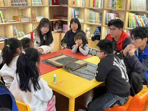 活动开始由主持人简要介绍活动的目的和意义,对在场的小朋友们和观众表示欢迎,并且展示了各种各样精美的木版年画的照片,引起了小朋友的兴趣。之后主持人详细介绍东昌木版年画的起源并且向小朋友们展示东昌木版年画的实物,让他们更具有体验感。东昌木板年画作为国家级非物质文化遗产,具有独特的艺术魅力和文化内涵。从古至今,在不同朝代都有独特的发展特点,主持人也详细讲解了选材刻版多用梨木、刻版前的线稿绘制、刻版上的人物图画等要点,并用图片和文字展示了东昌年画当前传承的情况。最后通过主持人的讲解,小朋友们在各位志愿者的带领下一起印制了多种多样的东昌府木版年画。