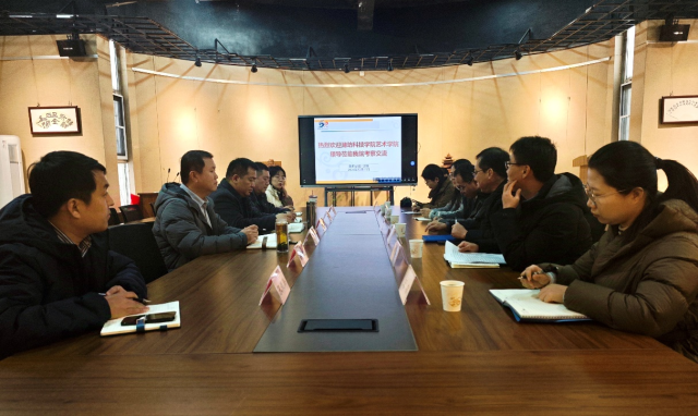 12月11日,潍坊科技学院艺术学院院长姜亦金、党总支书记魏巍、副院长郭继鹏等一行7人来我院调研交流。学院党委书记杨庆实,党委副书记、院长张兆林,党委副书记、副院长孙研红,副院长王青嵩,团委书记孔德滕、党委组织员张雅琪参加交流。会议由张兆林主持。