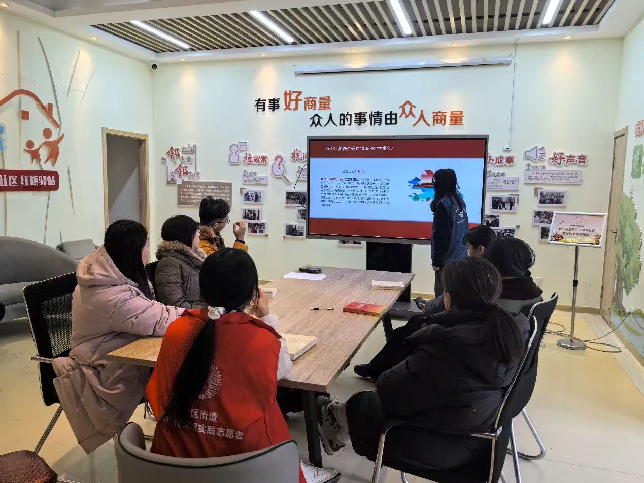 活动伊始,讲解员通过PPT讲解,向社区群众普及了党的二十大精神和“两个确立”的相关知识,把党的理论成果向社区群众准确传达,解决了社区群众关于理论理解不透彻,概念迷糊的问题,有利于社区基层群众在思想上保持与党的高度一致。活动过程中,通过知识学习,社区群众从实际出发,联系物质生活和精神生活方面的变化,探讨了党为社会进步国家发展所做出的贡献,调动了基层群众对于民主政治生活的参与热情,促进社区之间围绕党的理论学习展开交流互动,增强了人民群众的幸福感,获得感和使命感。最后,活动人员组织大家进行写春联的实践活动,提升了社区基层群众的整体精神面貌和凝聚力,有利于增强基层社会的和谐与稳定。