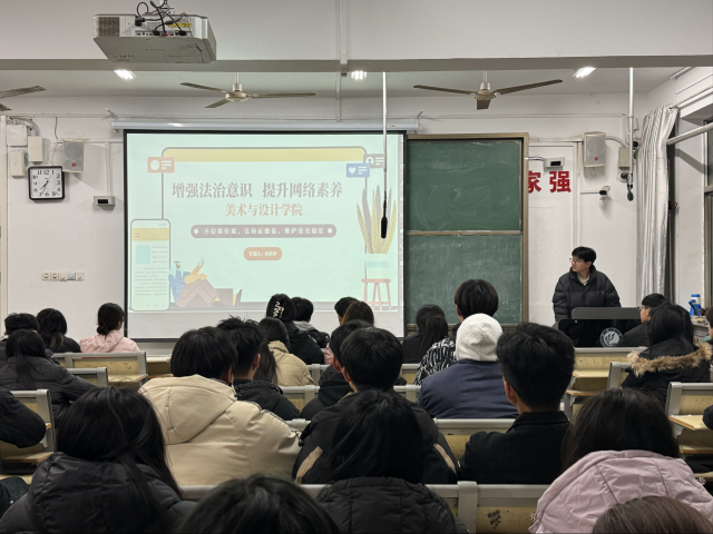 为了提升学生的法治观念,引导学生正确对待网络,2月17日,美术与设计学院于101合堂举办 “增强法治意识,提升网络素养” 宣讲活动。