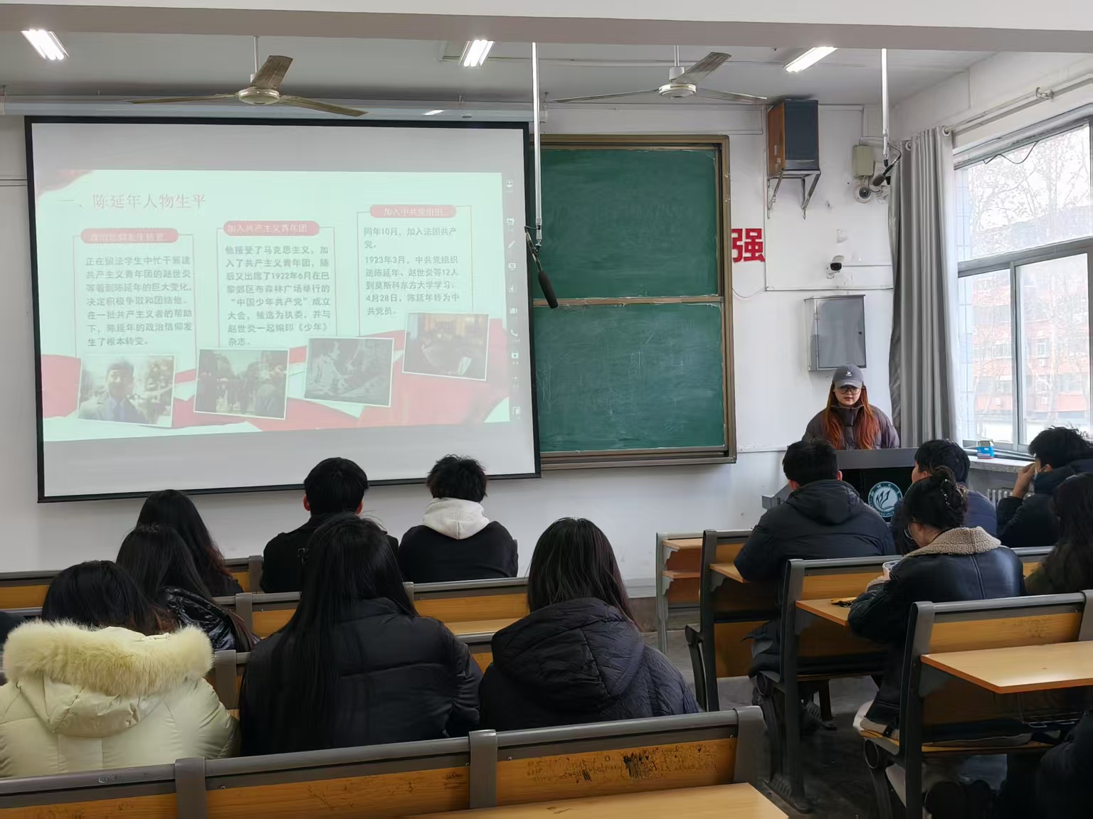 2025年2月20日下午四点半,美术与设计学院学生党员在7号教学楼201合堂举行“四点半”微党课(2025年第1期│总89期),本次党课以“英雄楷模故事”为主题,讲述了革命先驱陈延年的生平事迹、英雄壮举和后世评价。本次微党课由研究生党支部第十党小组段梦瑶主持。