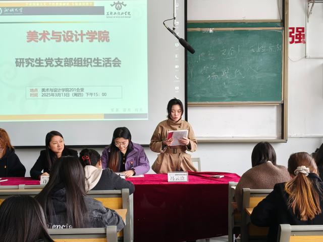 为深入学习贯彻习近平新时代中国特色社会主义思想和党的二十届三中全会精神,加强基层党组织建设,3月13日,美术与设计学院研究生党支部在7号教学楼201合堂召开2024年度组织生活会,开展了民主评议党员工作,支部全体党员参加了此次会议。
