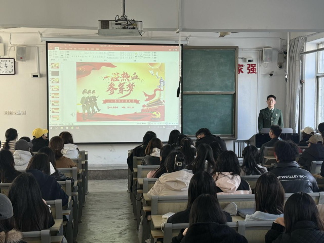为深入贯彻落实国家征兵政策要求,切实拓宽毕业生就业途径。3月20日,美术与设计学院于7号楼101教室开展2025届毕业生应征入伍政策宣讲。本次宣讲会由军训教导营副营长徐德正主讲,2025届毕业生代表参加。