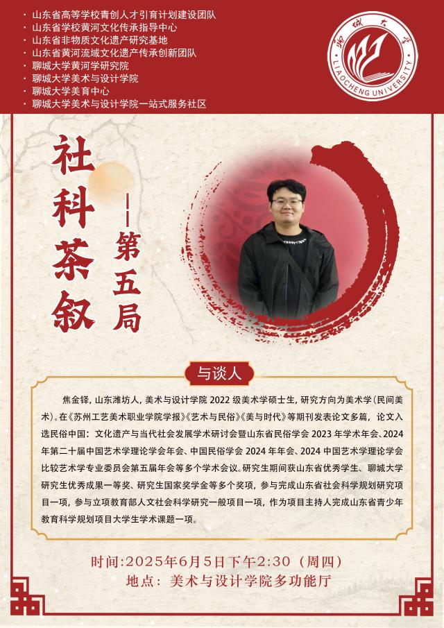 6月5日下午,“社科茶叙——第五局”活动在美术与设计学院多功能厅成功举办。