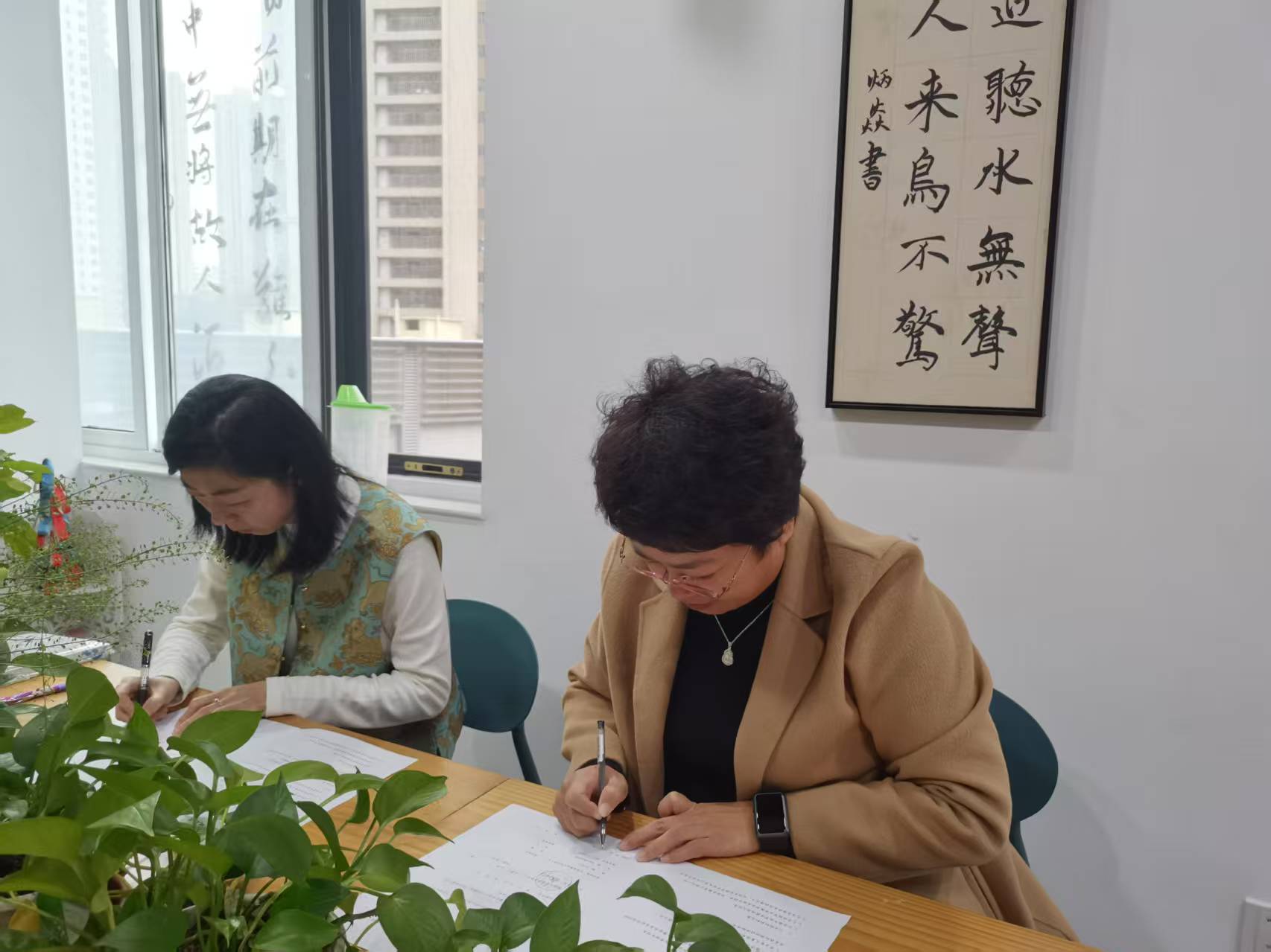 孙研红一行参观了公司的教学平台和教学资源中心,详细了解了公司在书法、绘画等领域的发展成果。自家书事校长宋玉洁介绍了其办学理念、教学模式以及未来发展规划。孙研红从学院概况、专业设置、办学特色以及人才培养成效等方面详细介绍了学院的基本情况,并对2026届毕业生进行重点推介。双方一致认为,通过院企合作,可以更好地帮助学生将理论知识与实践能力相结合,增强就业竞争力。会后,宋校长与我院投递简历的毕业生代表进行沟通交流。